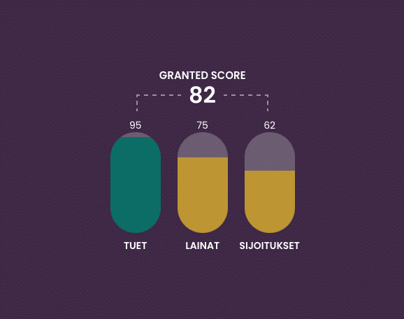 Me tarkastelemme rahoituskelpoisuutta yli 20 parametrin kautta, jotta voimme antaa yritykselle kattavan arvion eri rahoituslähteiden rahoituskelpoisuudesta. Rahoituskelpoisuus määrittää suurelta osin myös onnistumisen todennäköisyyttä.